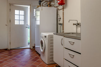 The house stands out for its charm and historical details. The spacious kitchen is modern and flooded with light, equipped with generous work surfaces, well-thought-out storage spaces and an open ambience that invites you to chat while cooking. Right next to the kitchen is a spacious conservatory with a fireplace. It is surrounded by windows and glass doors that provide direct access to the garden. This creates a light-flooded, inviting space for all seasons. Inside, two beautiful tiled stoves create a warm and cozy atmosphere. The tiled stove in the living room exudes nostalgic charm, and a tiled stove also creates a particularly inviting atmosphere in one of the spacious bedrooms on the upper floor. Despite the sloping ceilings, the bedrooms upstairs are bright and spacious, giving them a cozy atmosphere.