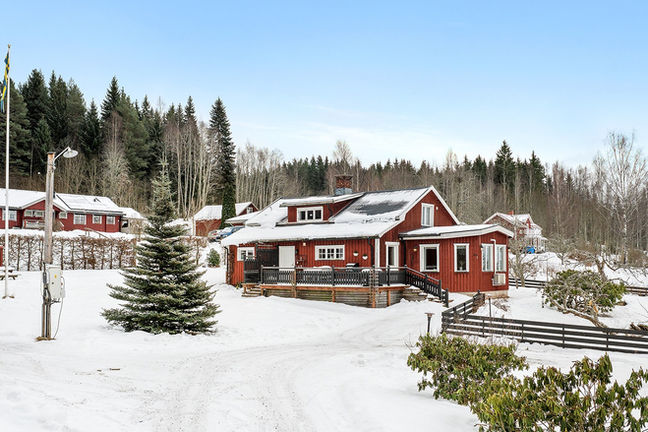 This idyllic farm, situated in picturesque surroundings with breathtaking views of Lake Björken, comprises approximately 12.5 hectares of land, of which about 6 hectares are woodland. The timber stock is estimated at 720 m³. The property boasts an energy efficiency rating of 9.1. A charming and light-filled house with several communal spaces awaits you here. Outbuildings, a storage shed with a boiler room, and a garage are also part of the property. Hunting rights are held in the Hällsjön VVO hunting area.