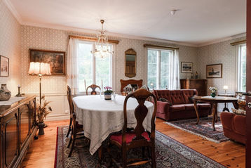 Welcome to this attractive villa, built in 1913, whose charm has been preserved! The house boasts 163 square meters of living space and offers spacious rooms, beautiful details, and several fireplaces, including a wood-burning stove, an oven, and a wood-burning kettle. The preserved tiled stoves are dreamy interior details that emphasize the house's historic charm.