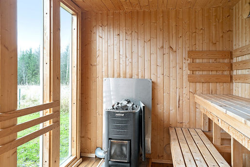 The main house delights with a well-thought-out floor plan that includes a hallway and a practical storage room, as well as a bathroom with shower and glass walls and a separate toilet. Furthermore, there are three bedrooms, a spacious living room with fireplace and heat pump and a sauna (currently used as a storage room). From the living room you can reach the glazed balcony, which leads to a large sun terrace - this is partially covered and south-facing.