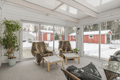 Taken har målats och väggarna är tapetserade i harmoniska färger, vilket skapar en varm och inbjudande atmosfär. Det moderna IKEA-köket med moderna vitvaror blir hemmets naturliga hjärta. Den äldre spisen och vedeldade ugnen har också bevarats, är fullt funktionella och är perfekta för dem som uppskattar charm och extra värme under de kallare månaderna. En extra bonus är den inglasade uteplatsen med värmeelement, som kommer att nybyggas 2024 och kan användas året runt. Det är en underbar plats för vardagsliv och fester under alla årstider. Badrummet har moderniserats med installation av en ny duschkabin och praktiska lösningar som ett städskåp och en byrå.