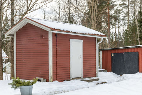 Ett separat trädgårdsskjul renoverades och vinterförvarades. Det har nu elanslutning, heltäckningsmatta och smakfullt mönstrad tapet – perfekt som gästrum, hemmakontor eller hobbyrum.