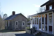 En inbjudande veranda i söderläge, som sträcker sig längs hela husets längd, är en populär samlingsplats nästan året runt. Ladan har också elanslutning.