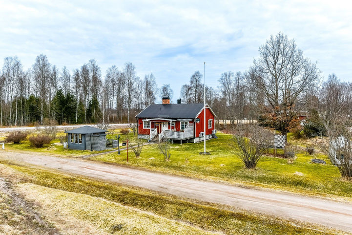 Entréområde med utgång från terrassen och plats för att hänga tvätt. Renoverat duschrum. Allrum och vardagsrum med nyinstallerad Jötul-braskamin. Det tidigare sovrummet har omvandlats till matplats. Rymligt sovrum med dubbelsäng och flera inbyggda garderober.